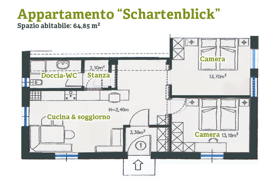 07.01.2025 - 28.06.2025 14.09.2025 - 13.12.2025 da 70,00€ - 75,00€ a notte per 2 persone |